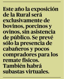 Con modalidad presencial y virtual, o sólo virtual, según determine el COE, la Rural redobla sus esfuerzos con una fuerte apuesta por la ganadería ante el interés demostrado por numerosas cabañas.