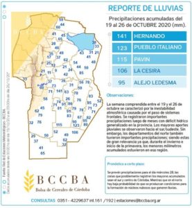 Durante la semana entre el 19 y 26 de octubre se registraron importantes precipitaciones de manera generalizada en la provincia, luego de meses de déficit hídrico.