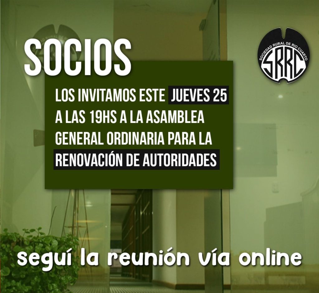 Se elegirá anticipadamente la nueva conducción de la entidad, cuyo mandato será por el término de dos años. En un nuevo paso institucional dentro de su rica trayectoria, la Sociedad Rural de Río Cuarto celebrará hoy jueves, desde las 19, la asamblea general ordinaria para elegir la nueva comisión directiva. La siguiente es la […]